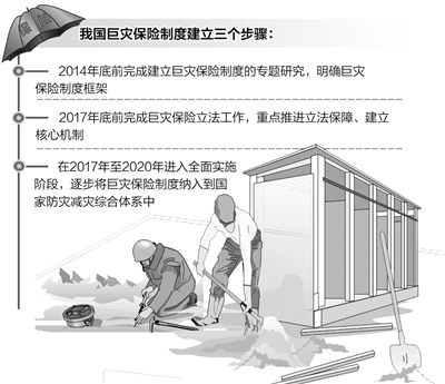 根据规划,巨灾保险制度建立的“第三步”是在2017年至2020年进入全面实施阶段,逐步将巨灾保险制度纳入到国家防灾减灾综合体系中。“巨灾保险制度非常复杂,加之我国幅员辽阔,地质灾害和自然灾害分布情况多样,这将是个非常艰巨的工程。”业内人士表示。